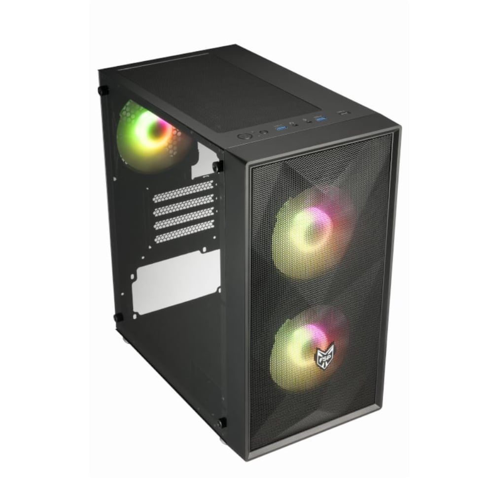 The CST130 Basic Micro ATX case from FSP delivers exceptional value and classic style. The metal mesh front panel, combined with three pre-installed 120mm RGB fans, ensures your system not only looks amazing but also stays cool under pressure. Superior airflow design keeps your components at optimal temperatures, while clever cable management features help keep your build neat and tidy.