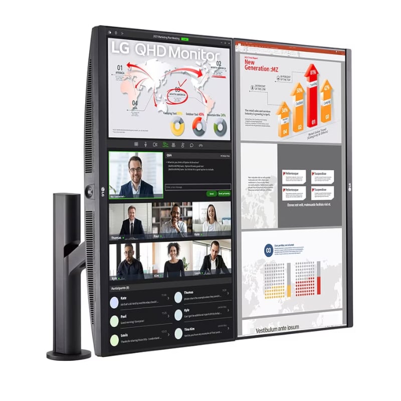 The LG QHD Monitor Ergo Dual provides unparalleled productivity and comfort. These monitors boast dual 27-inch QHD IPS displays with a resolution of 2560×1440 pixels, delivering stunningly detailed images and vibrant colours from any angle. With HDR10 support, you can enjoy a dynamic and immersive visual experience, making it ideal for creative and professional projects.