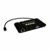 Expand your audio, visual and peripheral capabilities with the Port Type-C 11 Port Dock. With three video ports in HDMI, Mini DisplayPort and VGA, where both the HDMI and Mini DisplayPort ports offer 4k Ultra HD resolutions. The Type-C port allows for device charging thanks to its 60W Power Delivery. Its three USB3.0 ports expand connectivity with data transfer speeds of up to 5Gbps. The leftmost USB3.0 port supports Battery Charge 1.2 up to 7.5W(5V@1.5A), allowing for enhanced charging. This dock is designed for travel and accessibility with a durable build quality and a 25cm long cable. Its two card slots offer compatibility with SD/MMC and Micro SD cards. The ethernet port offers gigabit speeds for enhanced network power.
